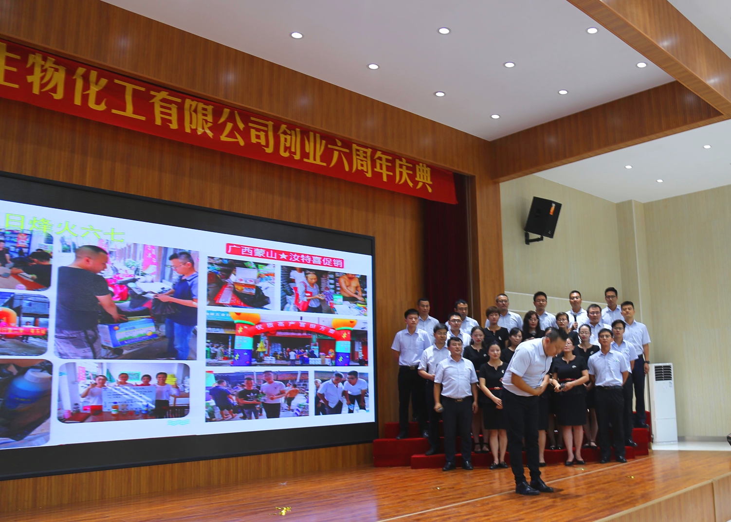 隨后,在威遠(yuǎn)生化多功能廳,范朝輝總經(jīng)理做了司慶報告,范總回顧總結(jié)了6年來的創(chuàng)業(yè)發(fā)展歷程,部署了2019年下半年工作,并展望未來發(fā)展,規(guī)劃布局。范總強(qiáng)調(diào),6年來,威遠(yuǎn)生化走過了一段激情創(chuàng)業(yè)的歲月,在短短六年時間內(nèi),各項(xiàng)工作取得了可喜可賀的成績,銷售收入實(shí)現(xiàn)增長翻番,取得國家級企業(yè)技術(shù)中心等各項(xiàng)榮譽(yù),在研發(fā)、生產(chǎn)、銷售各領(lǐng)域均得到了突破。在報告最后,范總,希望大家繼續(xù)不忘初心,向威遠(yuǎn)生化明晰的奮斗目標(biāo)繼續(xù)前進(jìn),譜寫更加輝煌的華章。