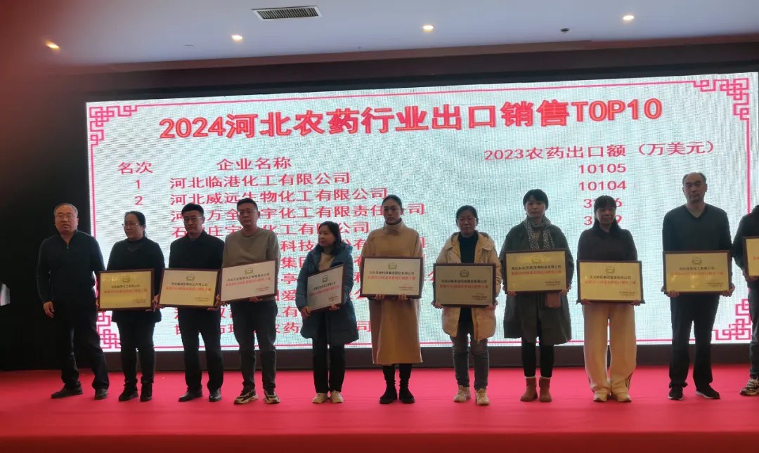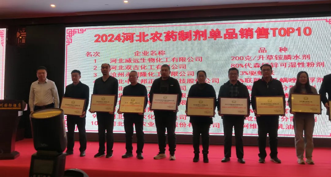大會發(fā)布了“2024河北農(nóng)藥銷售收入TOP10、2024河北農(nóng)藥出口銷售收入TOP10、2024河北農(nóng)藥制劑單品銷售TOP10等榜單,利民股份子公司威遠生化、雙吉化工分別榮獲河北農(nóng)藥銷售收入、出口銷售十強企業(yè)榮譽。利民股份產(chǎn)品200克/升草銨膦水劑、80%代森錳鋅可濕性粉劑、1.8%阿維菌素乳油分別榮獲河北省制劑單品銷售十強榮譽稱號。